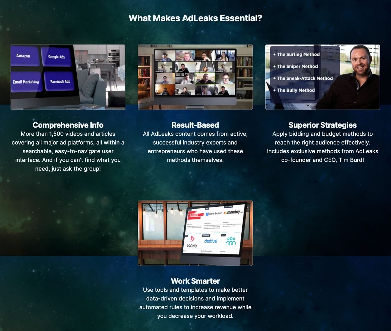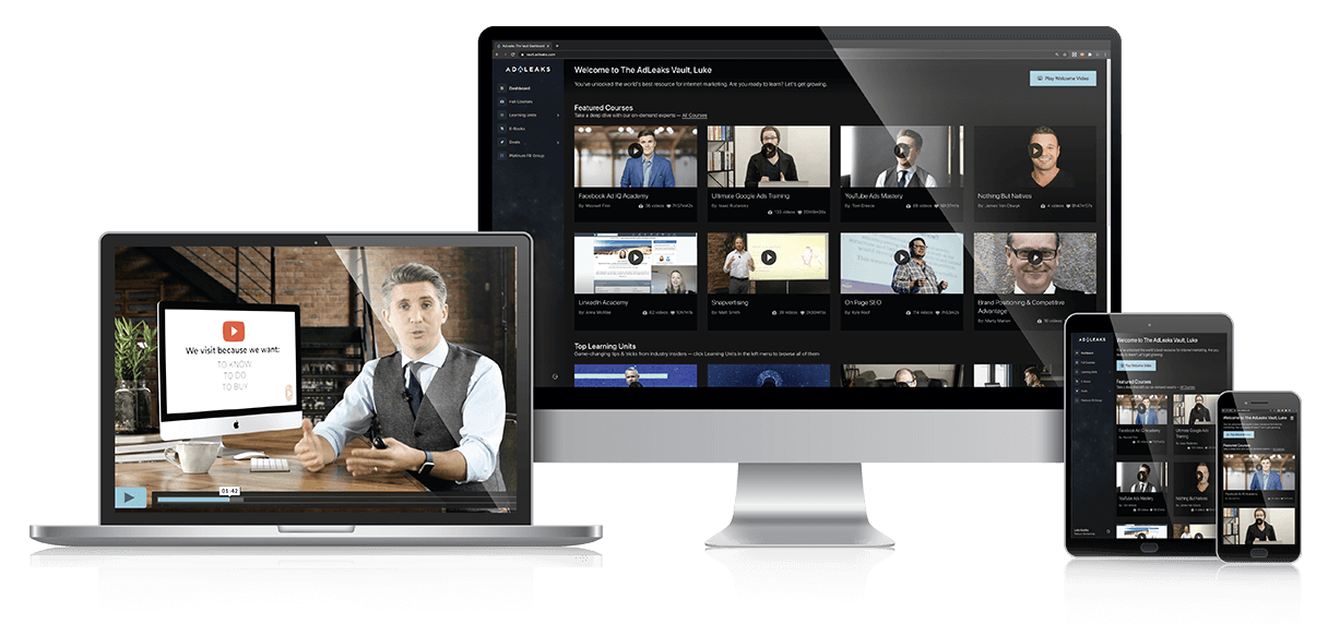 The AdLeaks Vault includes 30+ comprehensive courses on major ad platforms, building your personal and corporate brand, eCommerce, and so much more.