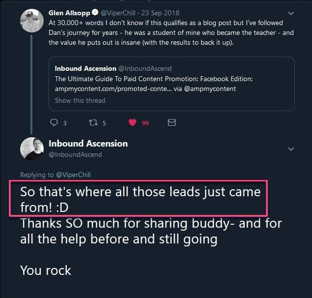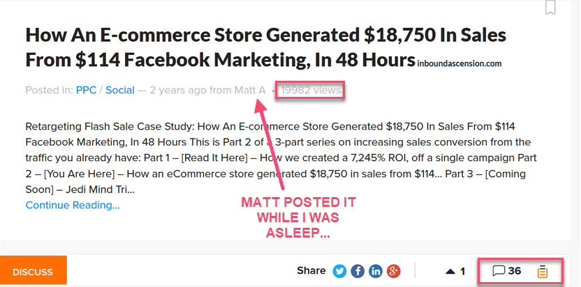 He enjoyed it so much that he decided to share my post for me on a huge marketing forum as a surprise!