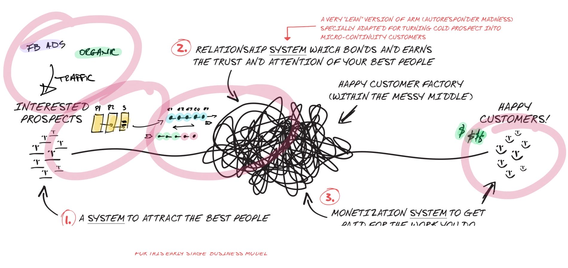 - [Happy Customer Engine] Here you build your lean Happy Customer Engine. Lean: meaning simple not complicated; not overdone to extract maximum possible revenue before trust is earned: