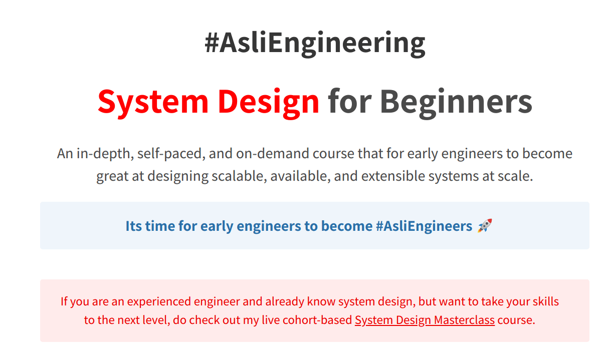 This is a beginner-friendly self-paced course on system design aimed at providing an exclusive and crisp introduction to building systems. The program will cover most of the topics under System Design and Software Architecture from scratch assuming no prior knowledge.