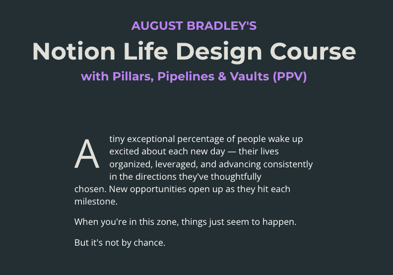 In part this is the full training for the PPV life operating system — the Notion Life OS that’s generated a remarkable following with an unparalleled level of use. It has changed a lot of lives.