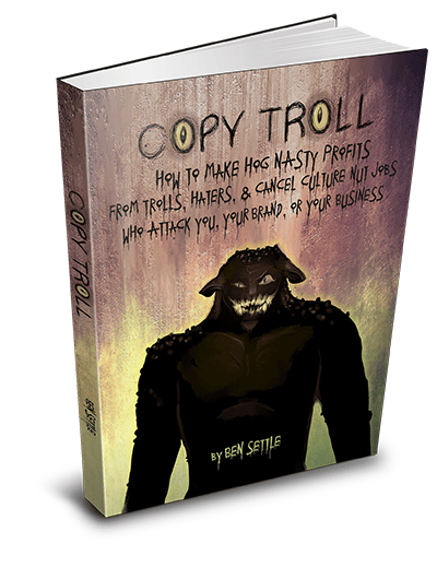 Copy Troll contains two swipe files of emails dealing with various types of trolls your business may be likely to encounter. One of the swipe files contains 30 emails I’ve used, and another has 11 emails my students have successfully used. There are also several other email examples “peppered” throughout the book. All together, they add up to over 100 pages of email copy to model, adapt, and use as “guides” when writing your own emails to profit from trolls.
