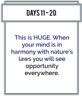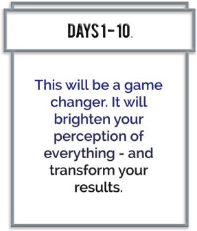 Every 10 days for the next 120 days you will see improvement in all of the above areas. We’re betting you’re about to shock yourself. You’ll be accomplishing what you’ve only dreamt of in the past.