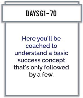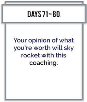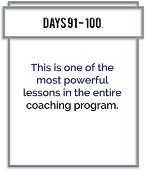There are a total of 12 Lessons covered in this dynamic 120-day coaching program. That includes 12 audios, 24 videos and a complete action planner. Every ten days, you’ll receive a printed lesson from your action planner, the lesson itself in audio accompanied with a video, and then 5 days later, another video to take you even deeper on that lesson so you get the absolute most from it.