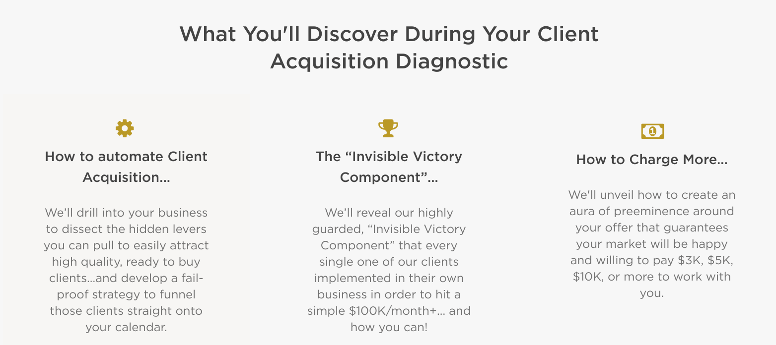 It also unlocks access to our platinum mastermind group to help you put all of the elements firmly (and correctly) in place.