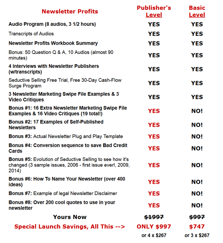 * 4 Bonus Audio interviews (average over 1 hour long each) with 4 independent newsletter publishers.