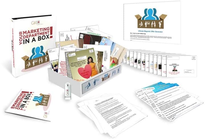 Here’s the complete rundown of what I’m going to receive and experience by signing up for “Your Marketing Department in a Box” program now: