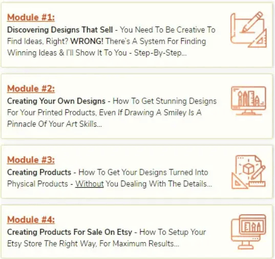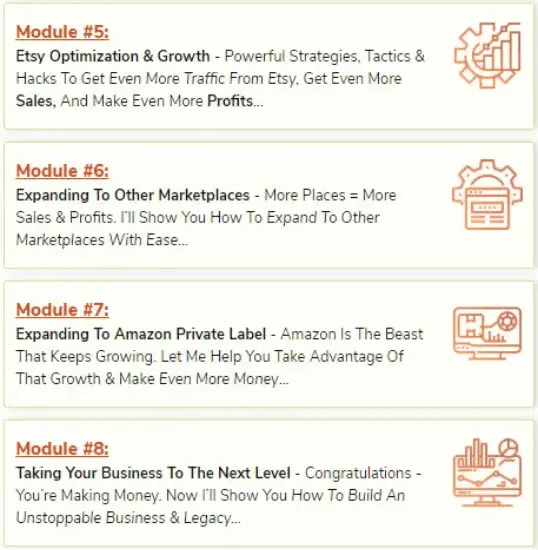 The Etsy Profits Generator Masterclass is a full 8-module video course where I’ll show you, in full detail, each step of the way from finding ideas to loading them onto mugs and other products to turn them into profits on Etsy and Amazon.