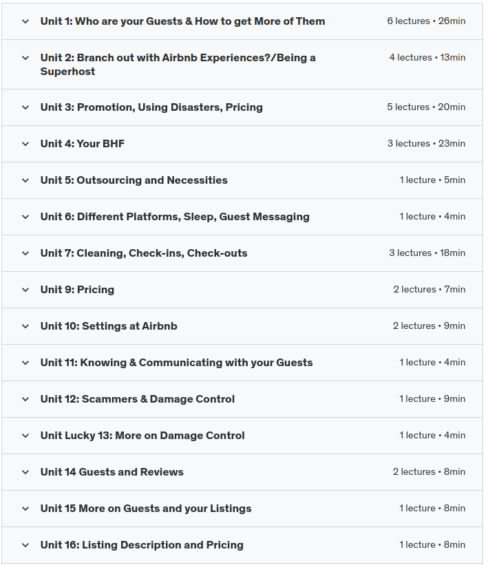 I have gleaned from a variety of sources in order to make the best course possible for students, while also incorporating my own vast experience as an Airbnb host. Airbnb Rental Arbitrage has been included as it is a growing topic of interest in the Airbnb community, as has Airbnb experiences – a which is another way to profit from Airbnb, whether you host or not.
