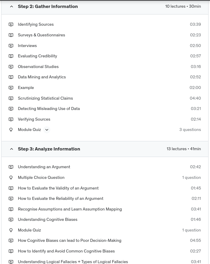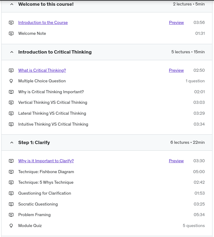 This course is designed for learners from all backgrounds and prior experience levels. No specific prerequisites are required to enroll and benefit from the course. Learners do not need any prior education or training in critical thinking, problem-solving methodologies, or analysis frameworks. The course teachings and assignments start from foundational concepts and provide step-by-step guidance on applying critical thinking techniques. Real-world examples and scenarios are leveraged so prior domain knowledge is not mandatory. A curiosity to expand one’s thinking abilities along with basic literacy, comprehension, and logic skills are helpful to fully absorb the concepts.