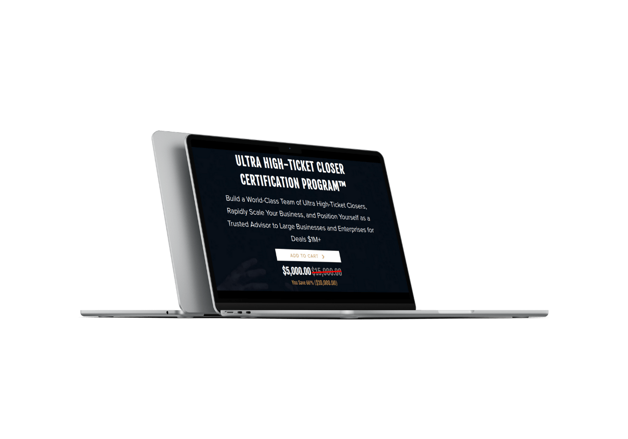 ULTRA HIGH-TICKET CLOSER™ CERTIFICATION PROGRAM is the ultimate B2B training to give your sales team the skills to build collaborative relationships and close sophisticated contracts in the $100k – $1M+ range with large enterprises and Fortune 500 companies.