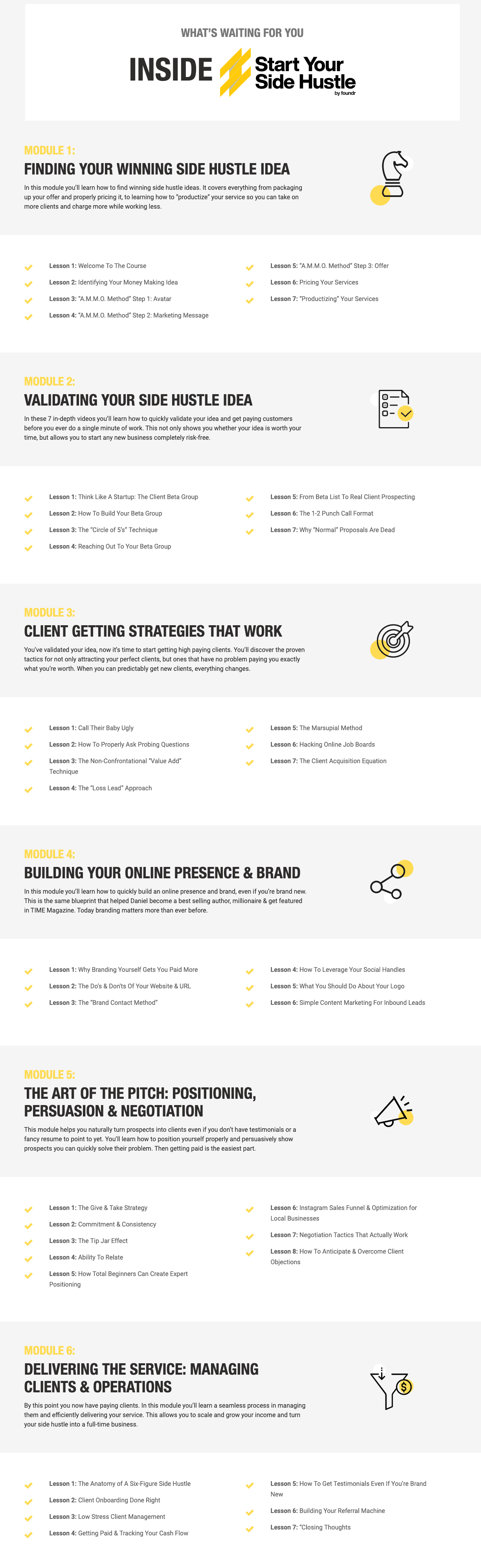 And as you know, all the strategy and tactics won’t matter if you don’t have the right mindset. Which is why, as a 5th bonus, we’re giving you a 14-part audio series Daniel recorded all about the mindset needed to become a successful side-hustler entrepreneur.