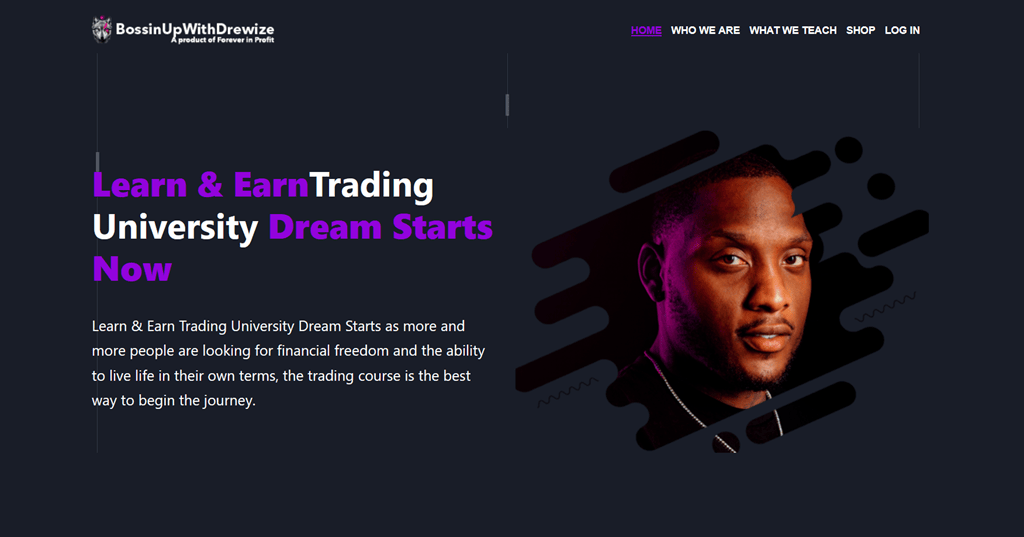 In 2019, I started making over 6 figures, but I realized I couldn’t keep all the knowledge to myself and decided to launch BossinUpWIthDrewize where I personally mentored others in my style of trading. BossinUpWithDrewize was designed for students that want to learn the art of my trading style with me every step of the way. The app helps build consistency without having to risk a lot of capital, and being able to still gather huge gains. My students are able to bridge the gap quickly and can go from basic knowledge of the markets to confidently making profits everyday and creating a sustainable career. BossinUpWithDrewize now has 2,500+ students worldwide.