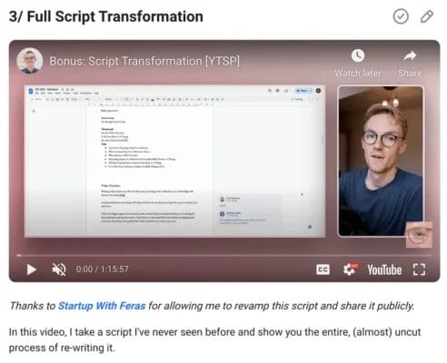 Once you’re done with the course, you’ll find a series of additional lessons to help you improve all the skills I use as a scriptwriter for multi-million subscriber YouTubers.