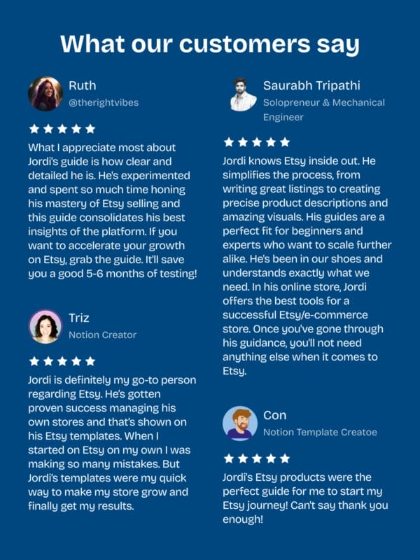 Join the 100+ Etsy sellers who’ve used our blueprint to unlock their shop’s potential.