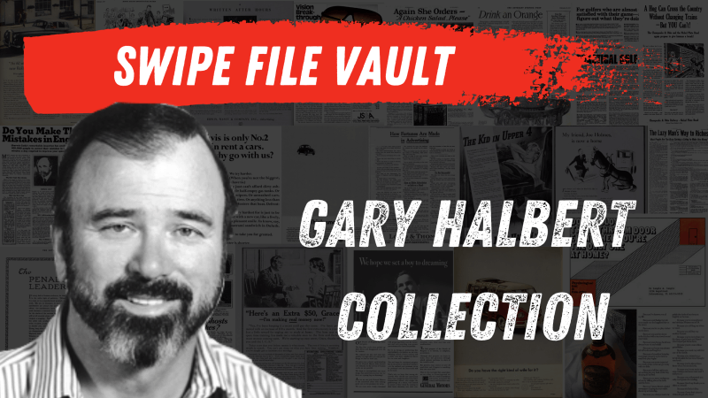 His ability to come up with unique big ideas, and weird mechanisms made his copy truly stand out. So ole’ Gene is a must-read if you’re a serious student of copy.