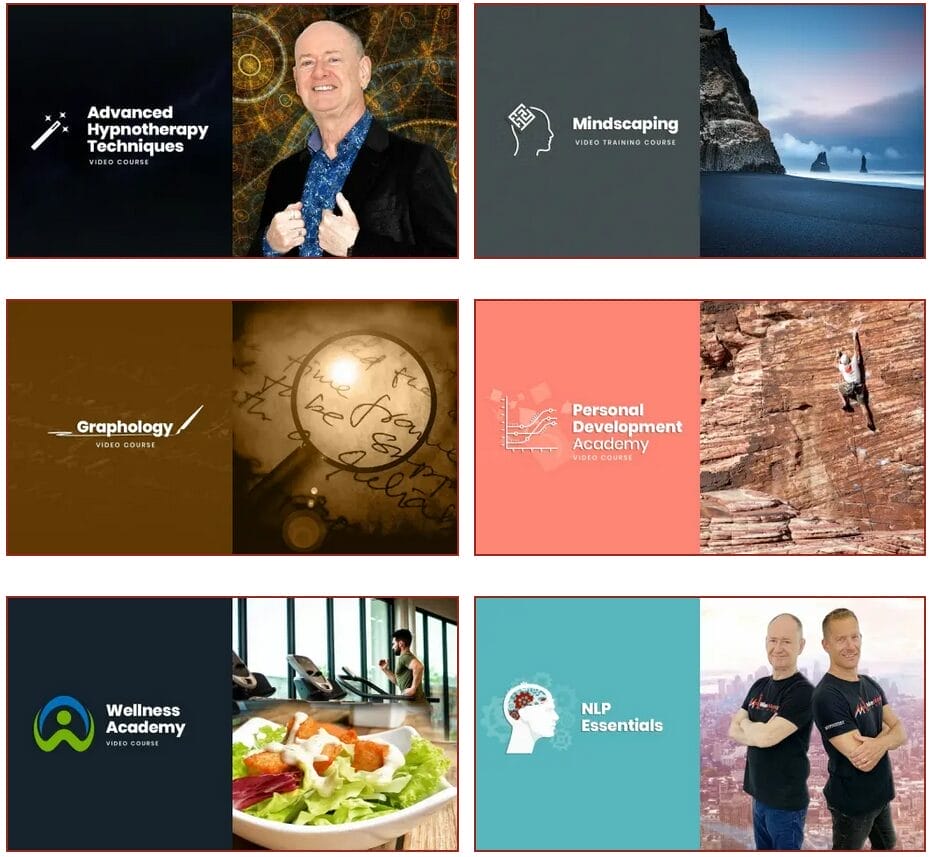 You’re getting MINDSCAPING, Graphology, Advanced Hypnotherapy Techniques, NLP Essentials, and our Personal Growth membership (which includes the Wellness Academy. These gifts come with lifetime access.