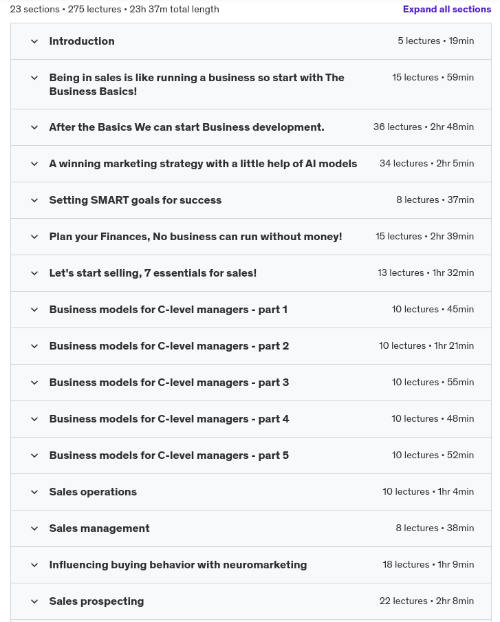 By the end of this comprehensive course, you’ll have a robust toolkit of sales strategies, a deep understanding of sales operations, and the confidence to tackle any challenge in your sales career. From prospecting to closing, from team management to technological integration, you’ll be equipped to excel in every aspect of the sales process.