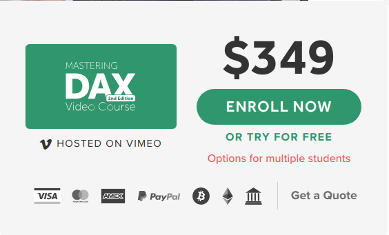 The goal of the course is to teach all the features of DAX, providing the knowledge to write formulas for common and advanced business scenarios. The video course is made up of over 15 hours of lectures, plus another 15-20 hours of individual exercises. You can watch the videos at anytime and the system will keep track of your progress. Within the course you can download the material for all the exercises.