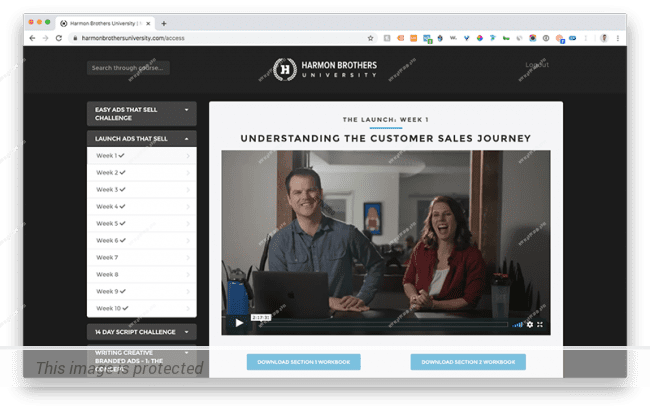 Over 15 hours of Guided Instruction from Daniel Harmon and the experts at Harmon Brothers, including extensive breakdowns of setting up campaigns, testing, crafting landing pages and emails—everything we do to launch our campaigns. (We’re serious when we say guided—this is a hands-on course. You’ll be working on your ads with the workbook assignments that will lead you to the end result of a well-launched campaign).