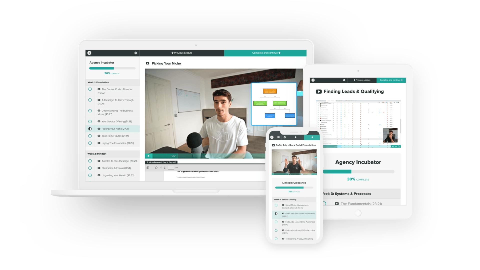 Over the span of 20+ hours, Agency Incubator has training that covers EVERY aspect of building an agency. This is almost a plug & play system with enough success stories to back it up! You name it… signing clients, running killer Facebook ads, building out your team, on-boarding clients, invoicing, sales… this course has everything covered for you