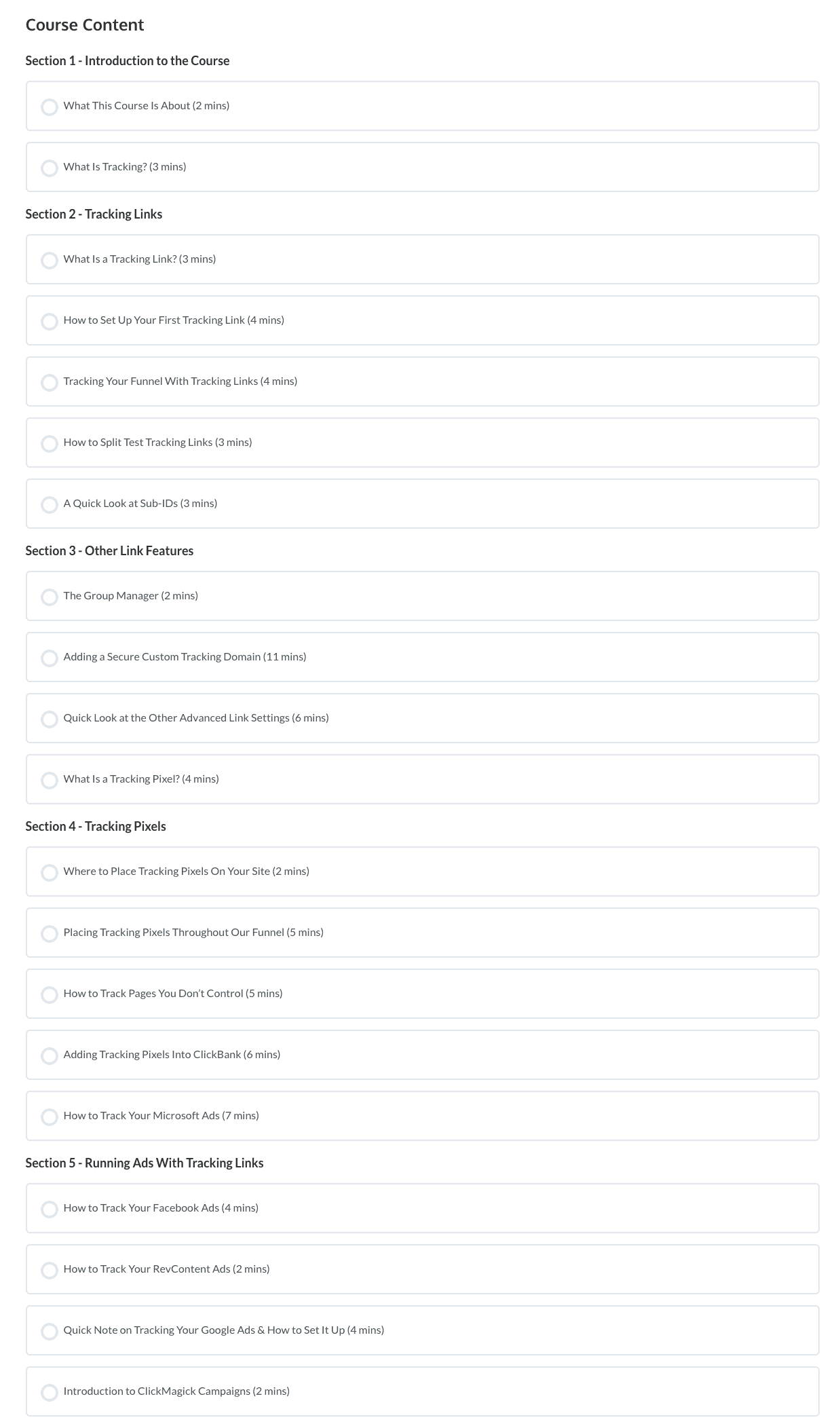 In this conversion tracking course, you will learn to set up and understand conversion tracking (Using ClickMagick as the tracking tool)!