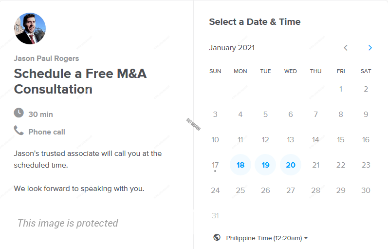 Jason’s trusted associate deeply understands the M&A process will try to give you as much advice as possible in 30 minutes. We want to provide real value to you specifically on this call. If we can’t help you or we aren’t a fit to work together in the future, we’ll certainly direct you to someone who can better help you.