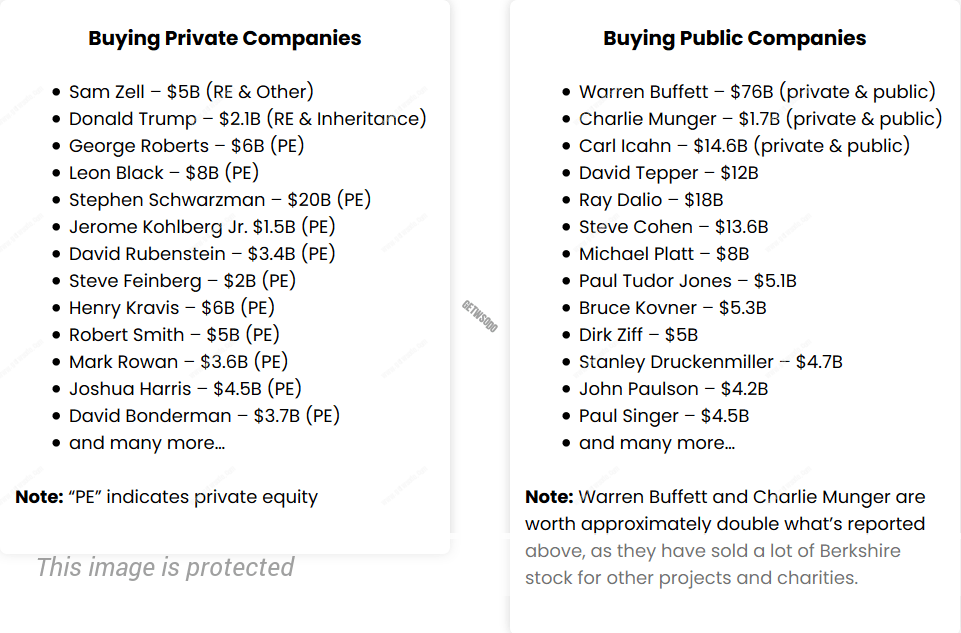 And, if wealth is your main priority in life and all the rest is secondary, then you should already know that buying companies has created more wealth than anything else… Just look at all the billionaires I mentioned above.