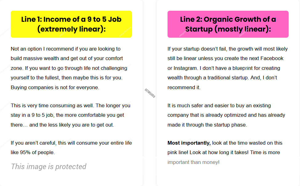 We blow everyone else out of the water with our program for a multitude of reasons. We are 10X more honest, we have a slightly lower investment cost, we have WAY better information, we have better support such as monthly Zoom calls and a members-only mastermind group, and more (some things are hard to explain on a webpage, especially if you are inexperienced with M&A).