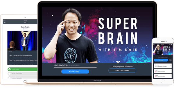 The Superbrain Quest is an accelerated learning curriculum designed to activate your brain’s limitless potential. Join Master Mind Trainer Jim Kwik on a 30-day adventure towards a bulletproof memory, unshakeable focus, and superhuman productivity. Whether you’re a professional, entrepreneur, student, or just someone looking to unlock the full power of your mind – you’ll experience life-changing elevations in your career and personal growth as you shatter every inner limitation that has ever dared hold you back.