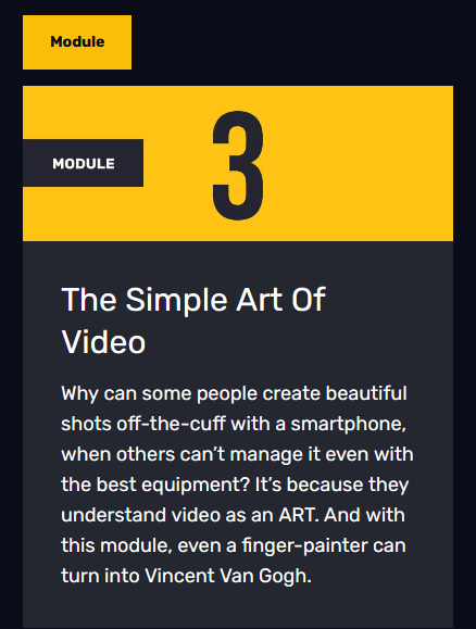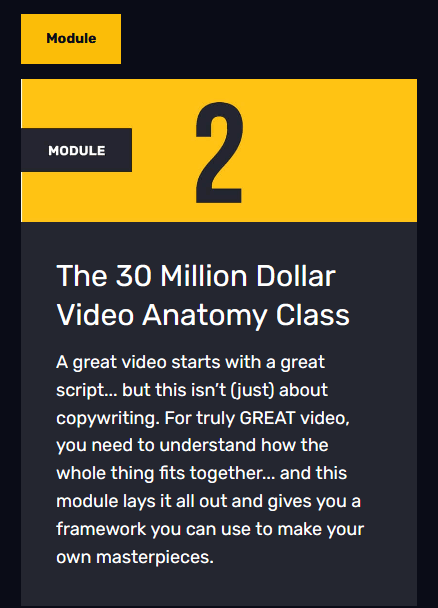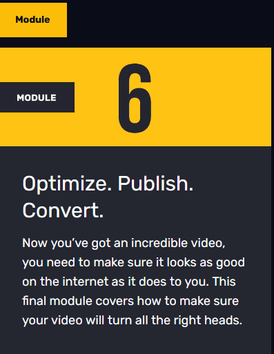 The second module alone is enough to get you creating video that could easily 10X your investment today, and that’s just a single video. The SKILL will be with you for LIFE.