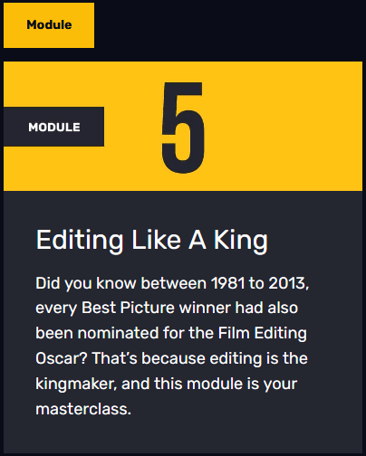 As for experience… by the time you’ve finished this course, you’ll be walking in front of the camera as easily as Brad Pitt, and have the swaggering confidence behind it of Quentin Tarantino.