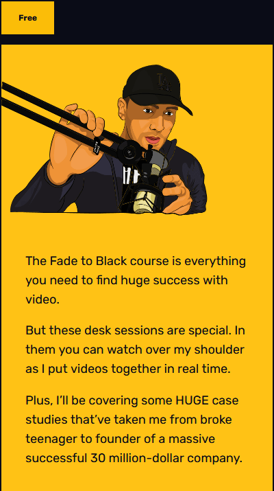 Sales. Subscribers. Engagement. It can all be achieved through the power of professional video… and the industry secrets you’ll discover inside Fade To Black.