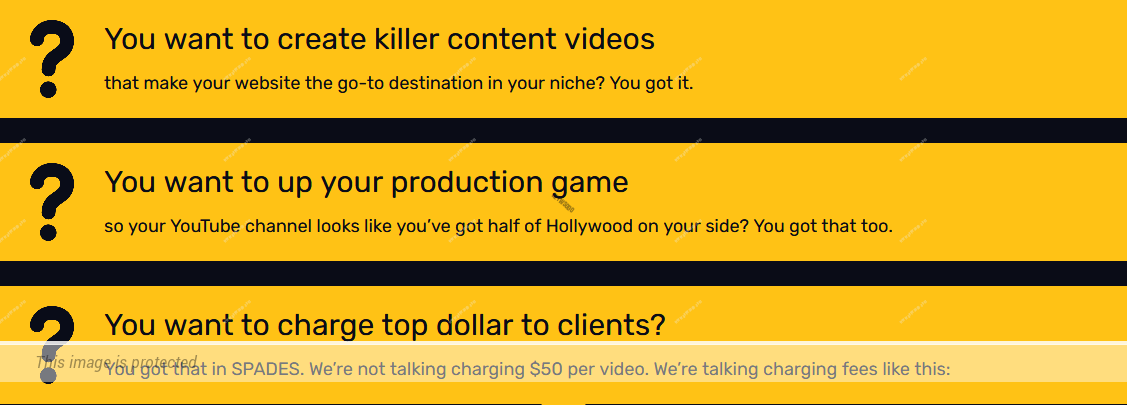 And you’ll have all 6 modules, the bonus sessions, and the ability to create videos for your business, your niche and your clients for much higher prices than you’ll be comfortable with.