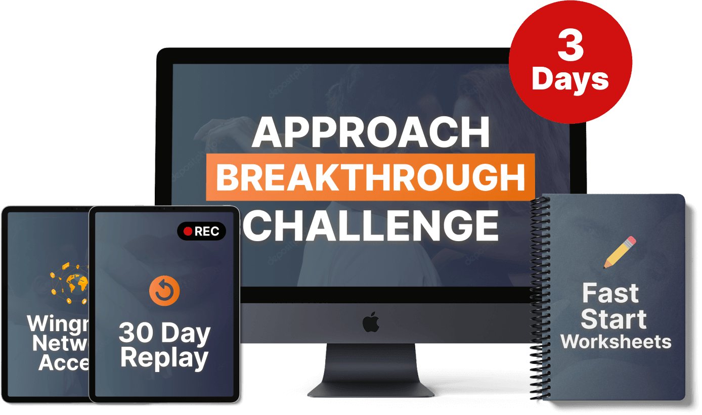 The Approach Breakthrough Challenge is a 2-day live online intensive where we show you how to effortlessly approach women and create a connection with them using my Natural Approach System.