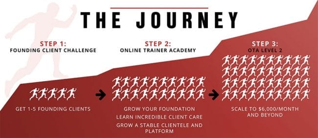 Step 2, the Online Trainer Academy Certification and Mentorship (OTA), is where you learn how to take amazing care of your clients AND build the ideal online fitness business for you. In step 2, you’ll get your foundation, growing a stable clientele and platform.