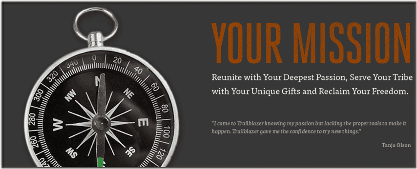Trailblazer is a Six Month, in the field training program that’s designed to help you move from indecision to certainty about your path. Each month we give you a very specific mission with training, maps, checklists and case studies to help you move closer to the final culmination: Getting paid to be you.