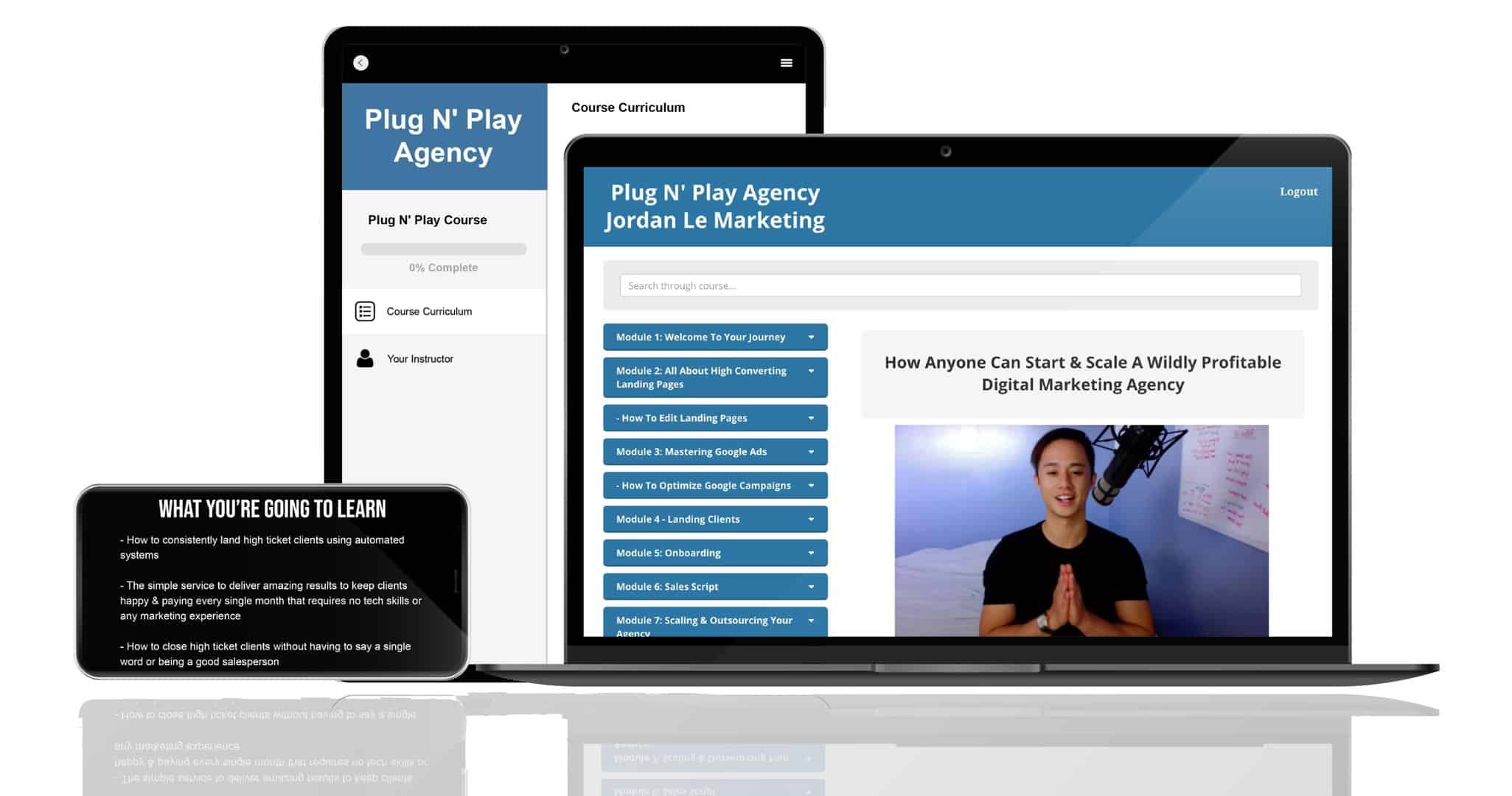 When you join the Plug N’ Play Agency program, you get access to over 75+ detailed and actionable training lessons. We provide you the 6-week content in video format to watch at your convenience on any mobile device so you can easily learn on the go.