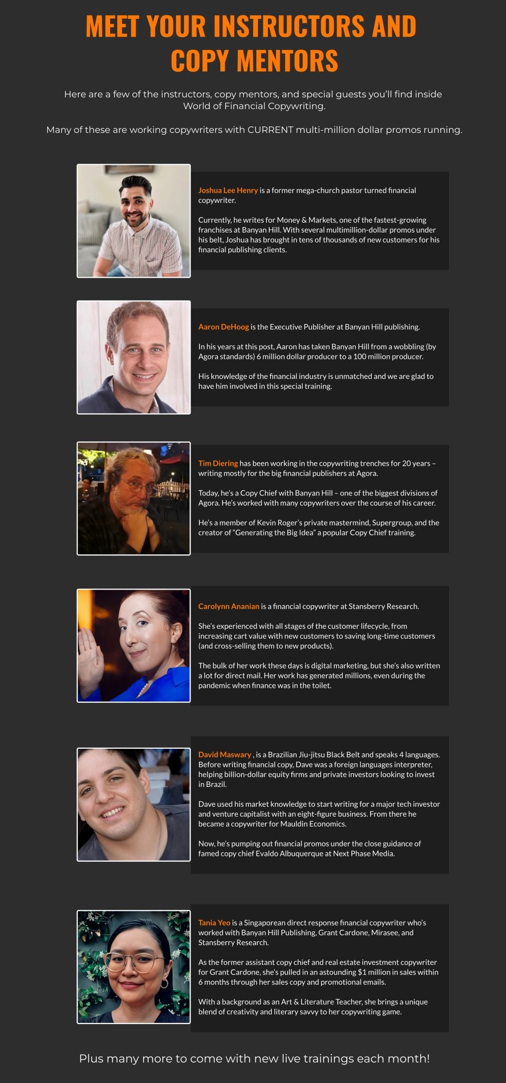 In this BONUS Lesson, The Financial Copywriting Experts Panel, you’ll hear from these copywriting pros…