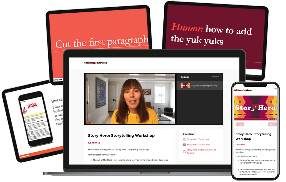 Best of all, the training is so much fun to watch and I take new notes every time I review it! Anyone who wants to sell, engage, entertain, or inform by telling stories–and who want to sound like themselves when doing so–should take out their checkbook (do people say that anymore? Heck–do people even DO that anymore?) and purchase Story Hero pronto!