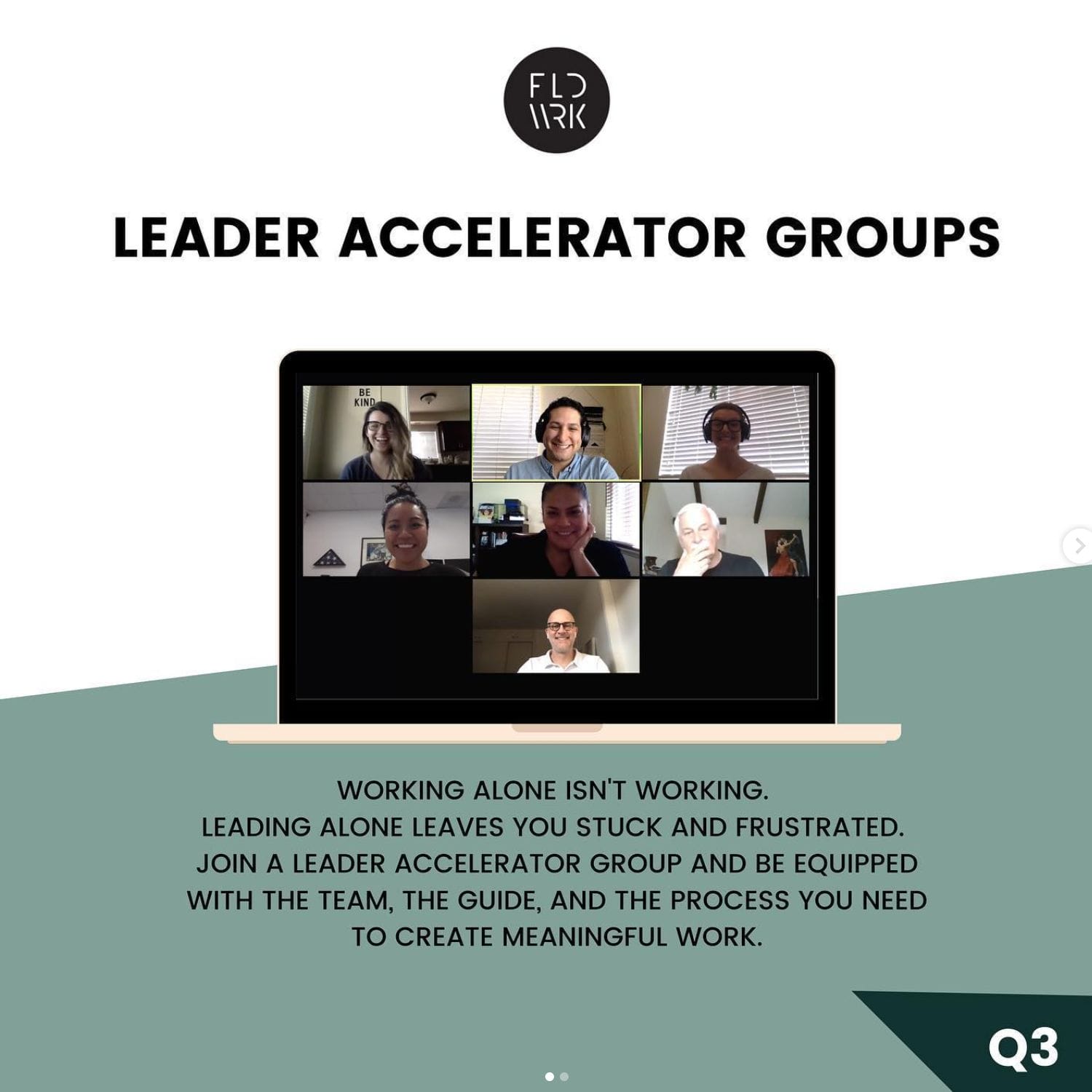 Leader Accelerator Groups equip you with the team, the guide, and the process you need to lead from your identity, create meaningful work, and a meaningful life