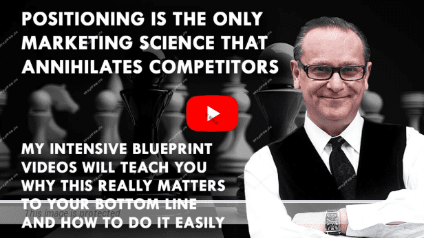 In my My Intensive Positioning Blueprint Video Course are 16 full-length videos (over 20 hours of advanced training based on my LIVE Positioning Training Course) that reveal the strategies and tactics your competitors don’t want you to know and teach YOU how to get massive competitive advantage fast. This is not beginner level stuff you’ve heard before.