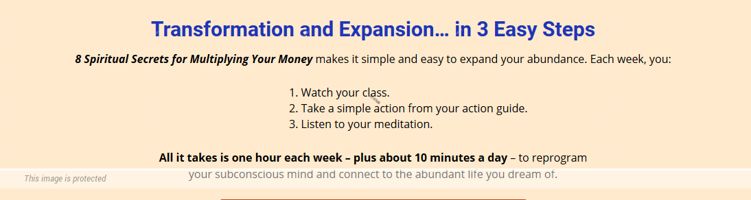 Now it’s time to take the next step… and enroll in 8 Spiritual Secrets for Multiplying Your Money so I can share the step-by-step system to: