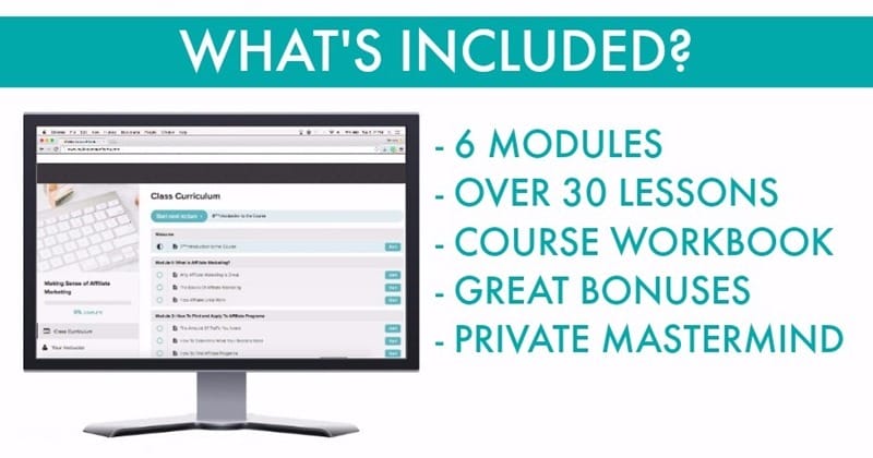 In this course there are 6 modules, over 30 lessons, several worksheets, bonuses, an extremely helpful and exclusive Facebook group, and more. I go through everything that you need to know about affiliate marketing, such as: