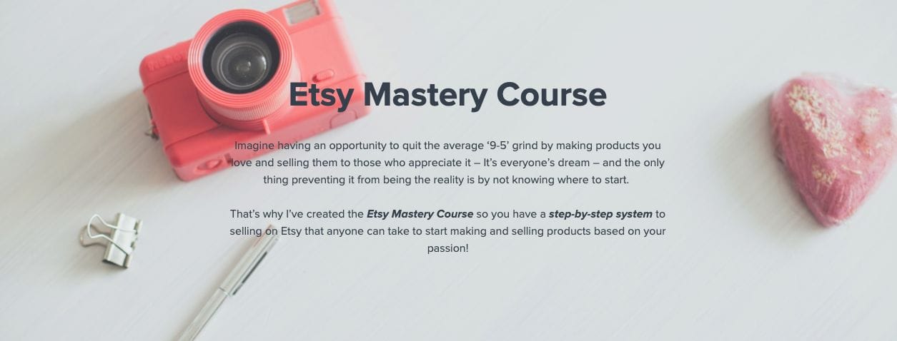 ✔ Additional 8 bonus courses to help you leverage the power of social media and branding to scale your Etsy business to the next level. (You’ll learn how to use FB, FB Groups, Instagram, Instagram Stories, Pinterest, and much more!)