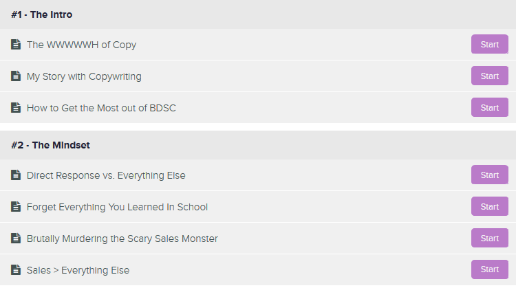 Essentially, I’ve taken every single bit of copywriting, sales, marketing, and persuasion knowledge I’ve obtained since I started making money, and condensed it all into one comprehensive, easy to consume, and easy to refer back to course.