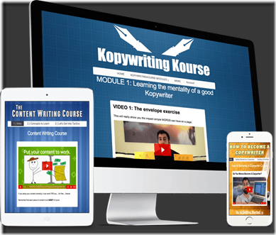 The main KopywritingKourse is a 2-3 hour program that will take anyone (either you, or your employees) through the basics of good copywriting, and the exact techniques to do it on every piece of marketing material you have. This is the foundation of this entire copywriting bundle (worth $697 on its own). Then you can continue on to learn advanced content stratgies, cold emailing techniques, and so much more. Everything is included and you get lifetime access right away.
