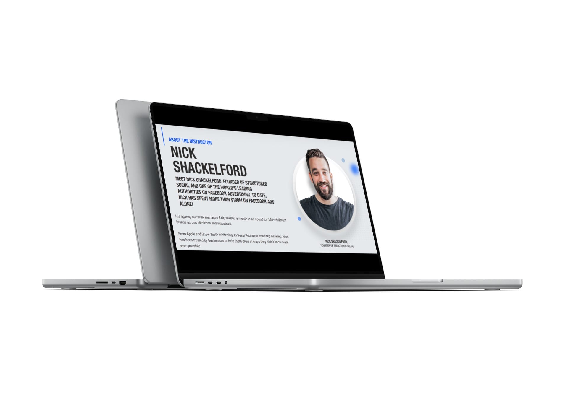 Module 5 will walk you through the proven “Ad Creative Framework” Nick and his team use for every single client. You’ll learn which copy to use, the right way to use images and videos, and exactly how to make a seamless user experience throughout the whole process.