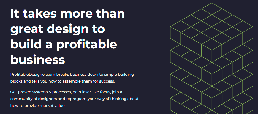 We get designers laser-focused on the simple actions that create big reactions. You’ll find our students building powerful offers, improving their marketing/sales systems and doing real work, not making noise on social media.