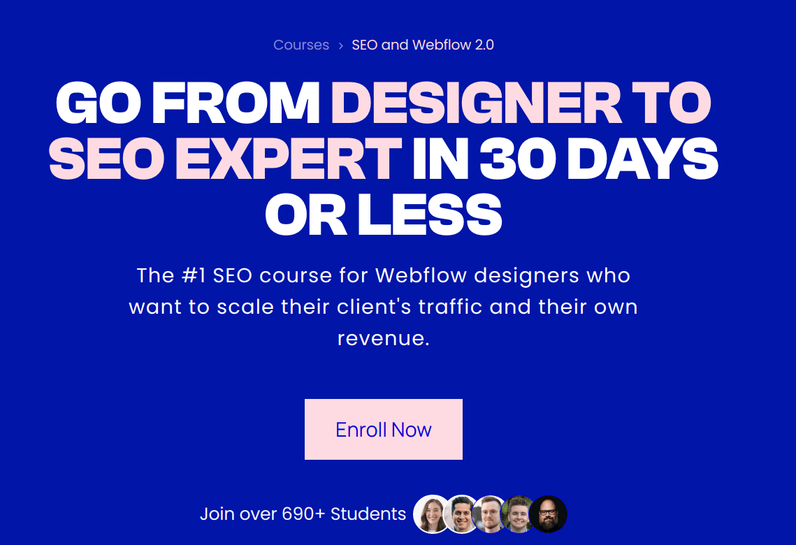 “All Webflow designers should understand SEO. This course will show you how to master it, package it and sell it!